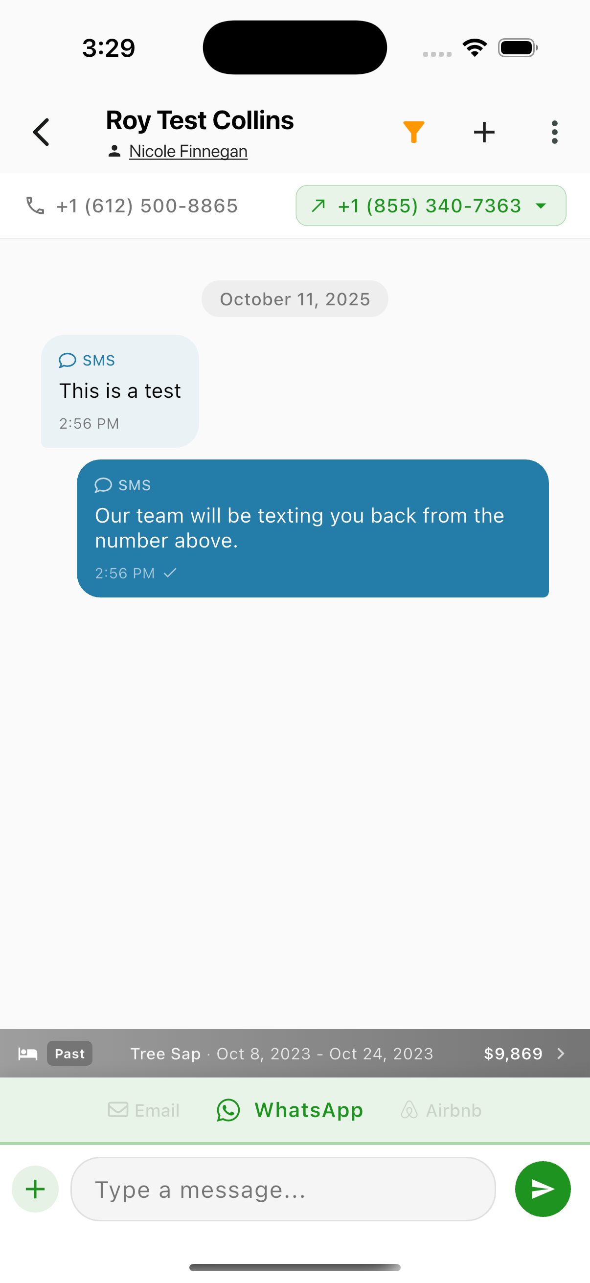 Switch between communication channels using the tabs above the input area: