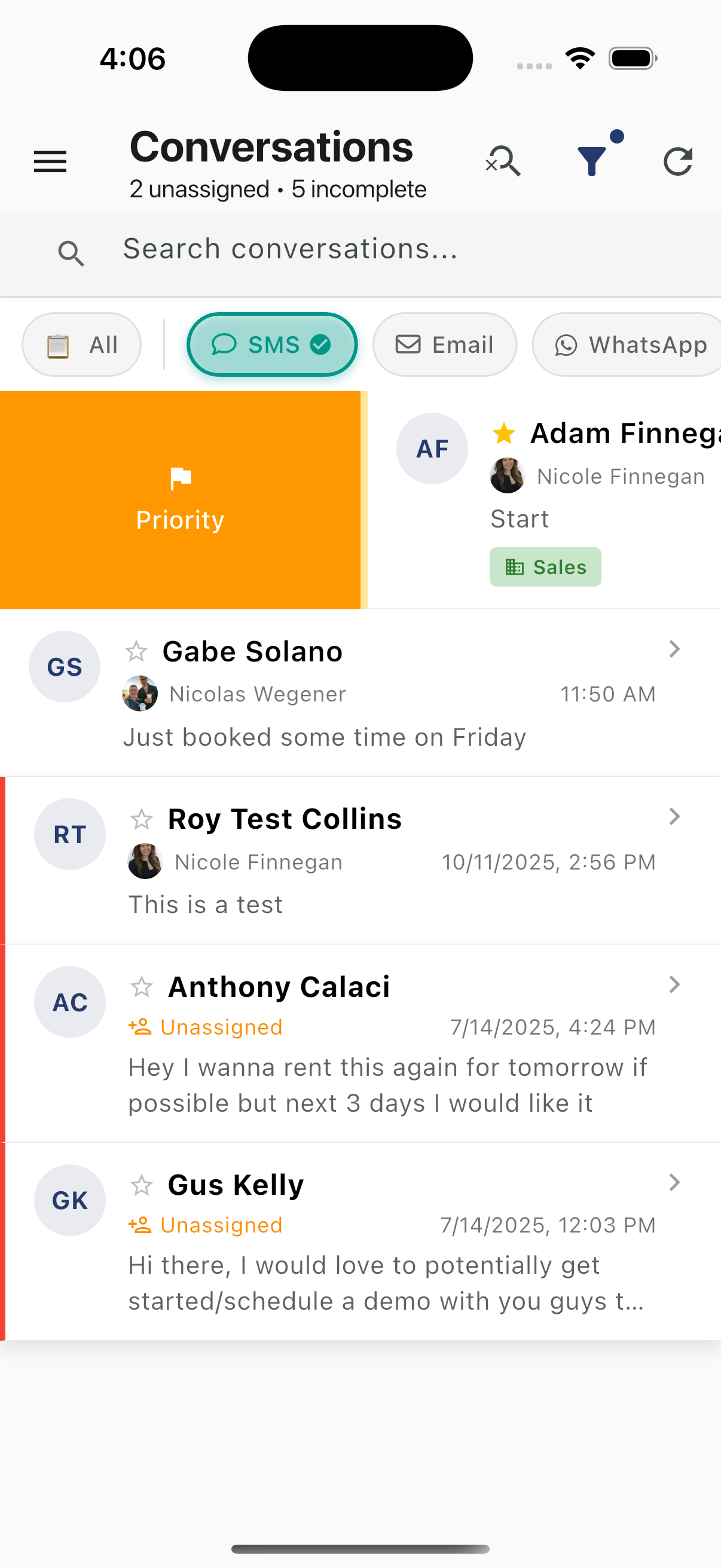 Priority flags help identify urgent conversations that need immediate attention.