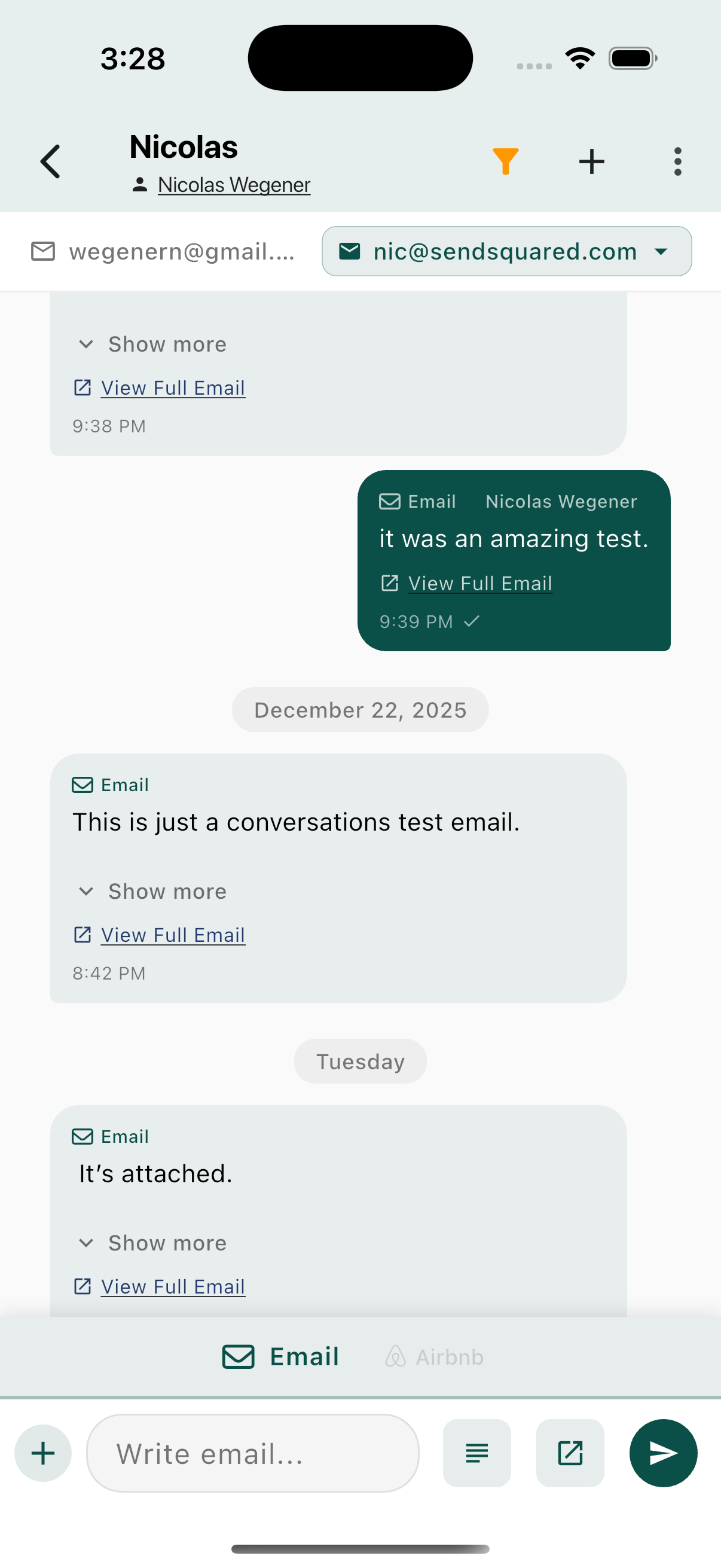 Long-press on any message to reveal message-specific actions that help you manage follow-ups and capture important information.