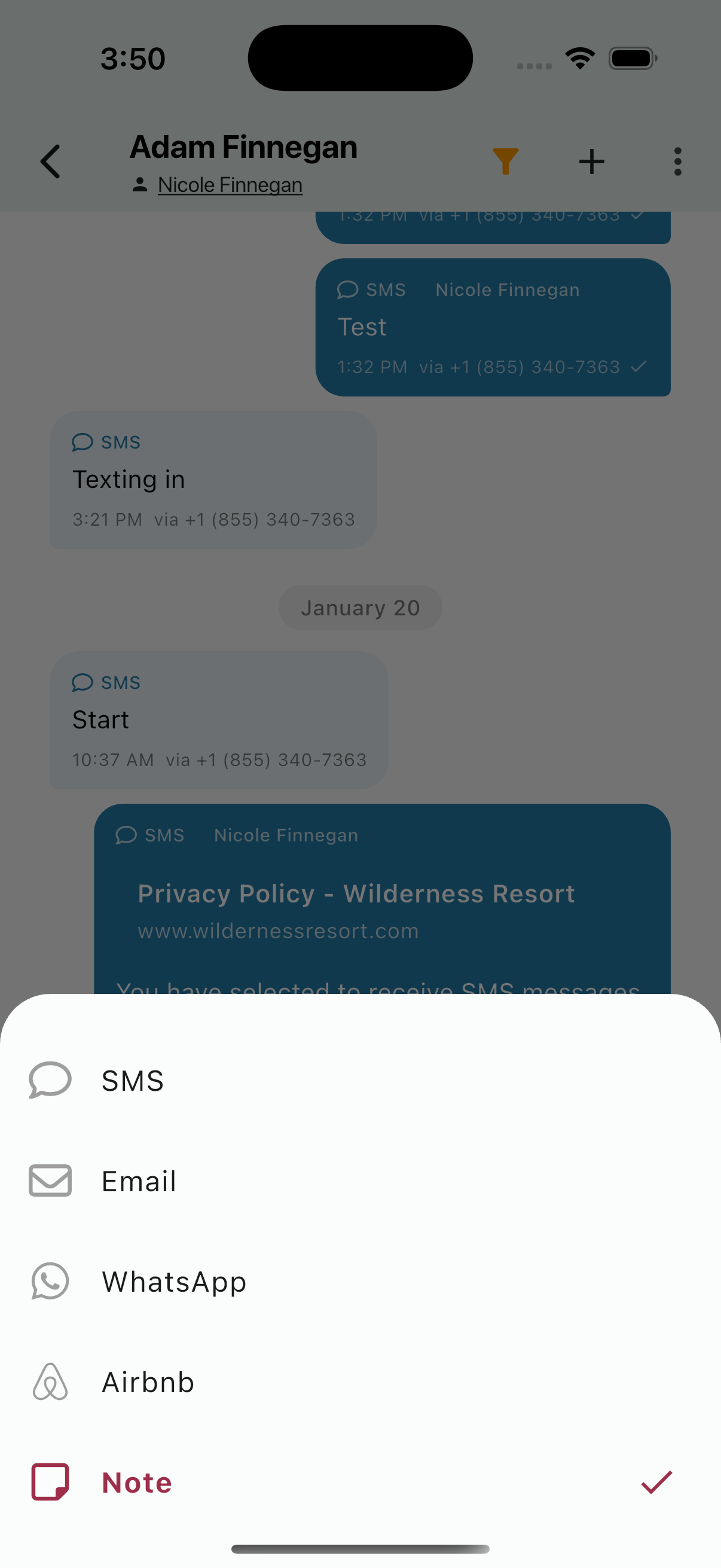 - Messages - All SMS, Email, WhatsApp, and Airbnb messages