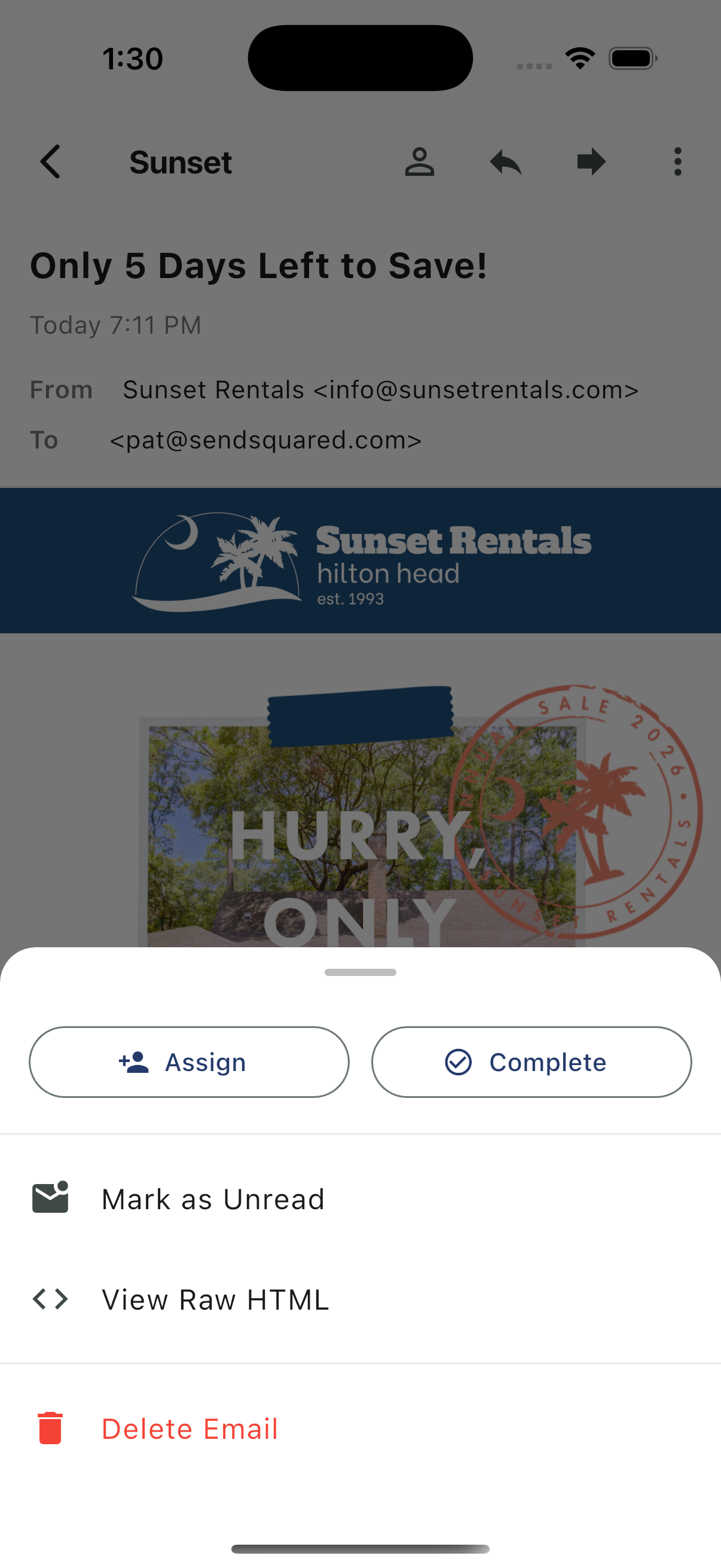 Tap Assign to assign the email to yourself or another team member. Assigned emails help your team track ownership and ensure every email gets a response.