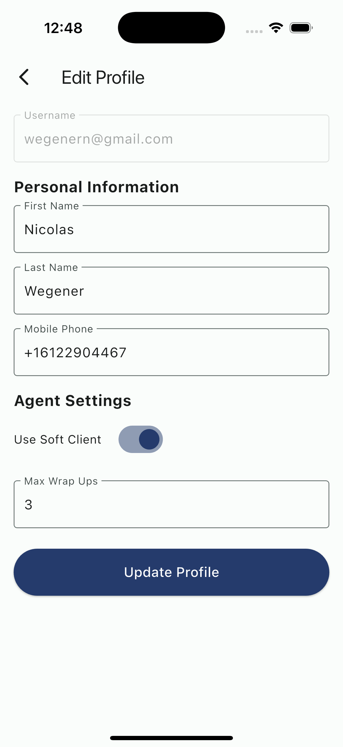 Tap Update Profile to save changes.