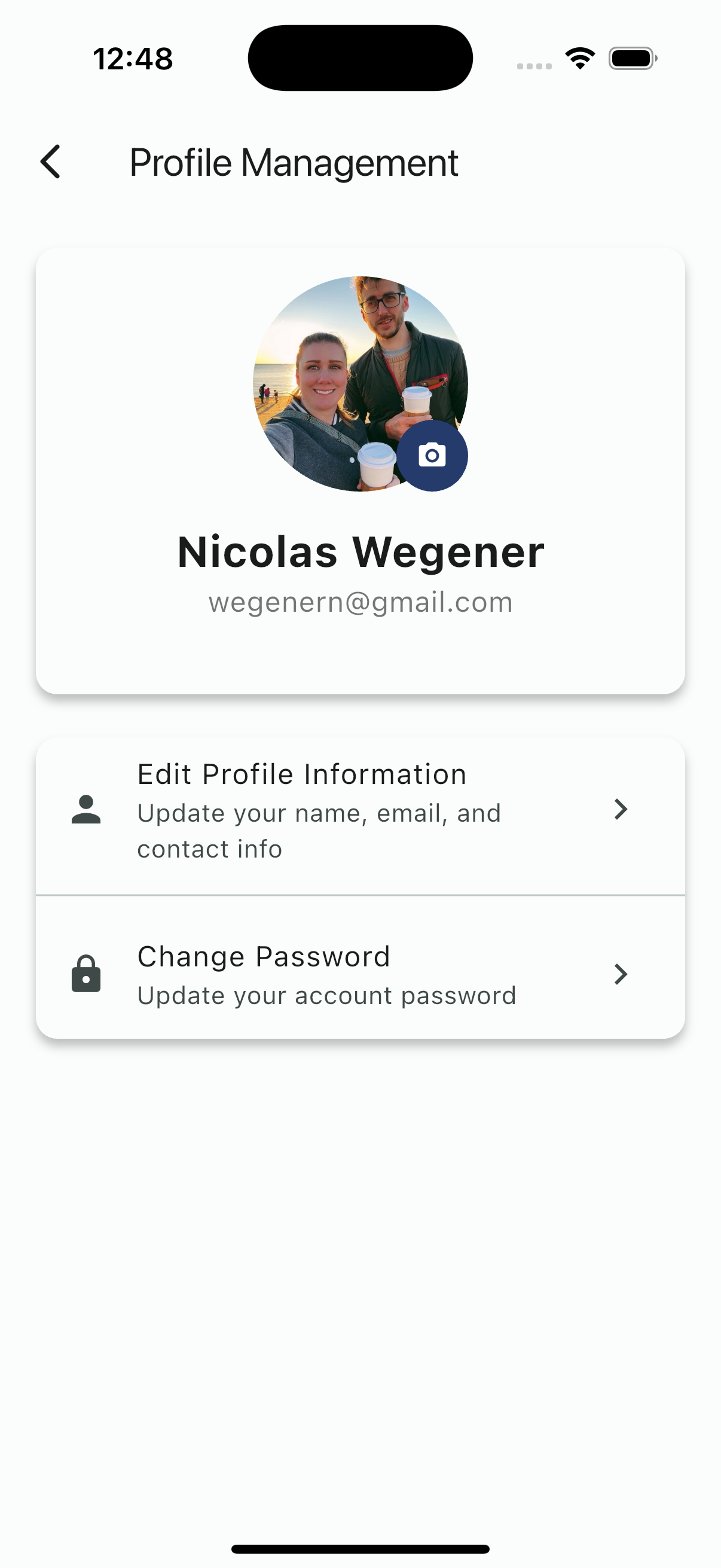 - Profile photo (tap the camera icon to change)