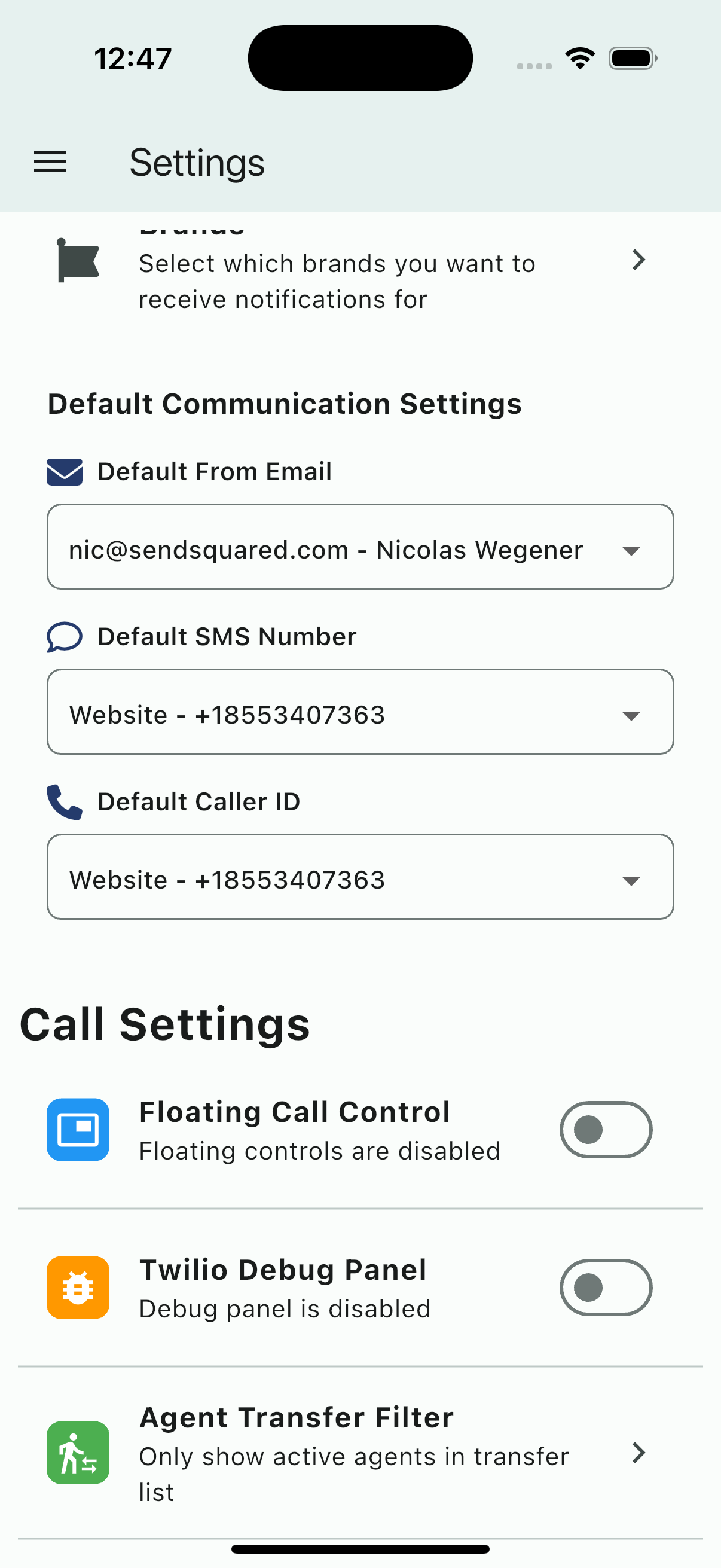 - Twilio Debug Panel - Enable for troubleshooting call issues