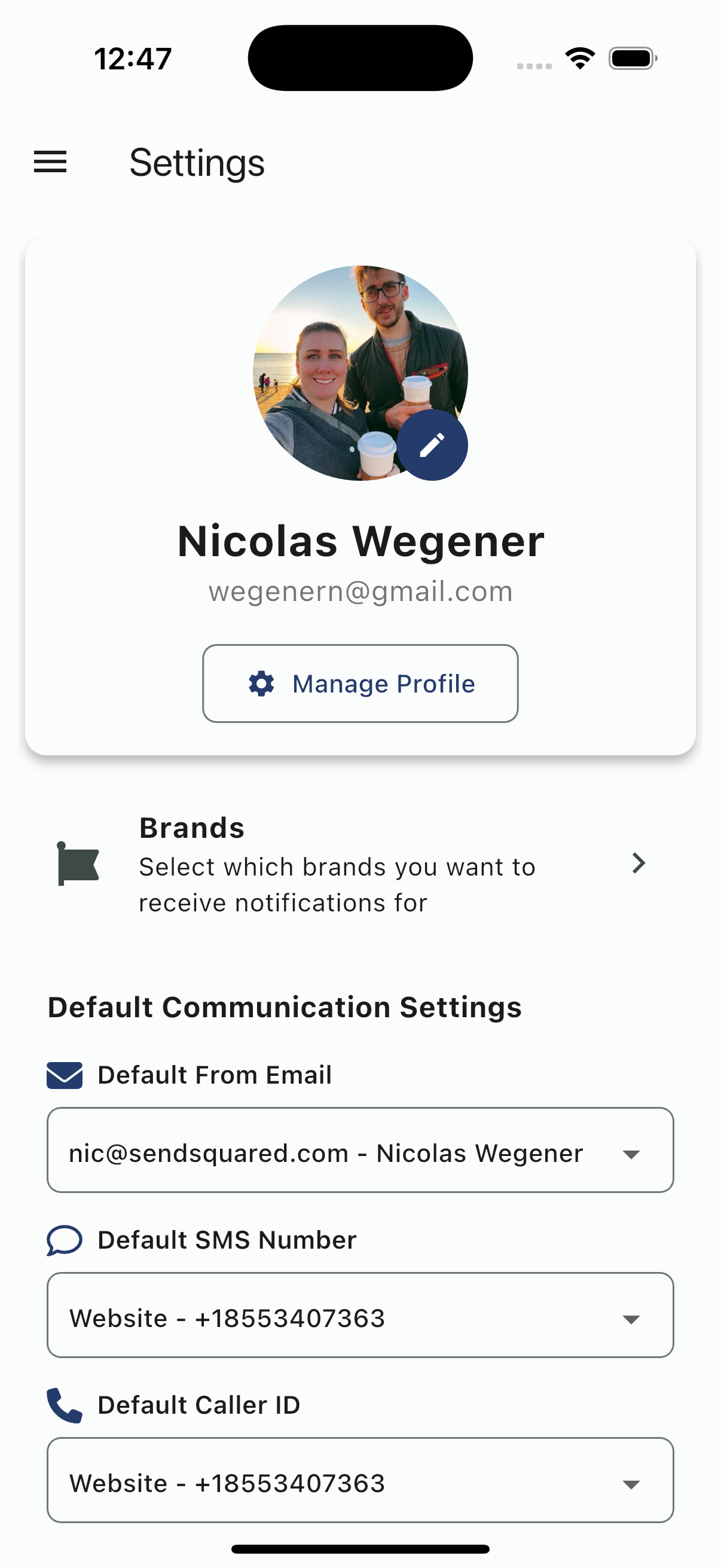 - Default SMS Number - Select which phone number to send texts from